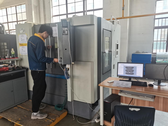数控铣采用常规单人赛,大赛指导教师蹇昊江亲自上阵,和选手们一同开启了技能比拼,重温赛场挥洒汗水的紧张与激动,比赛在有条不紊的进行。