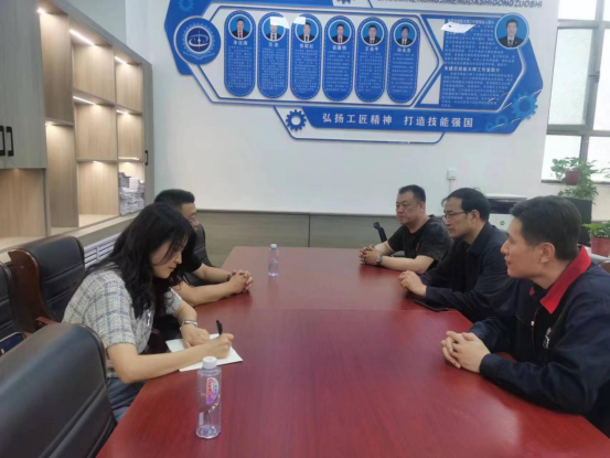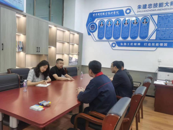 2023年6月7日 ,省人社厅职业能力建设处处长史永斌一行来到我院工业中心,就我院张天虎、朱建忠两个技能大师工作室运作、日常管理、技术科研等方面工作进行了调研。工业中心主任董建民、技师学院工作部部长谢宏斌、朱建忠技能大师工作负责人出席了座谈会。