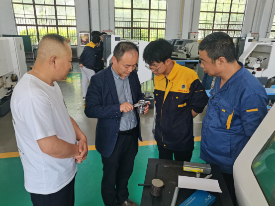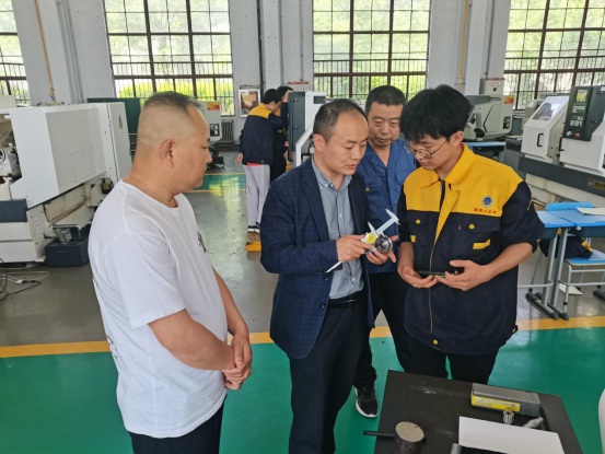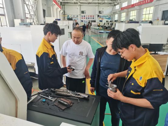 国家级技能大师张天虎老师,现场给学生进行指导,传授经验,对学生加工的零件进行检测,提出了宝贵意见,学生受益匪浅。