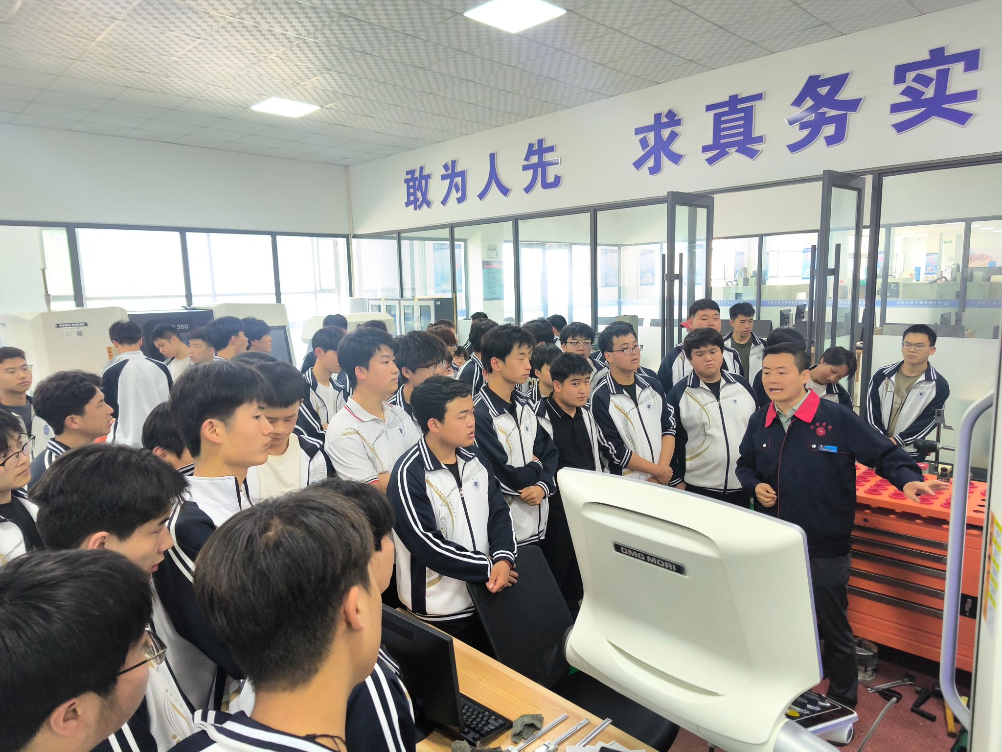 本次观摩活动开放了数控加工实训基地、高端数控实训基地、特种加工实训基地、金工实训基地、张天虎国家技能大师工作室及朱建忠省级技能大师工作室等实训场所,向同学们全方位展示了工业中心实践教学环境,丰富了同学们的知识面,拓宽学生的专业视野。