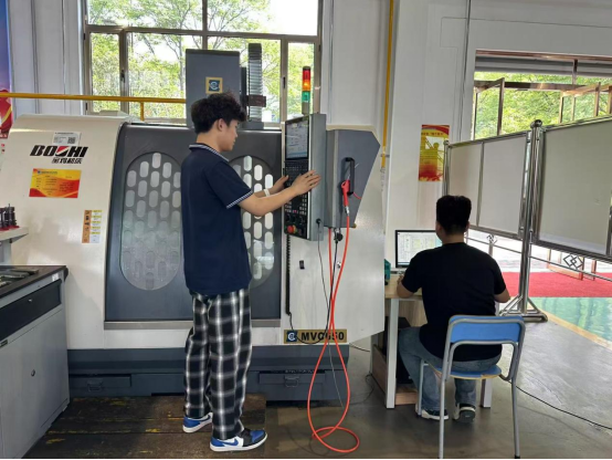 在工业中心实训车间,备赛训练正如火如荼地进行着,各赛项团队积极备战,展现出扎实的专业技能和顽强拼搏的精神风貌。
