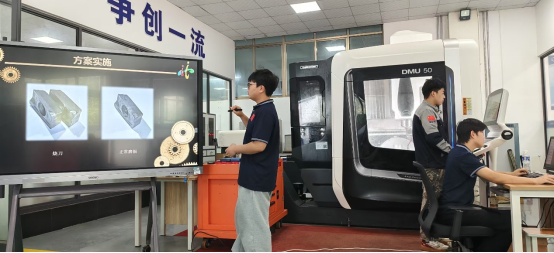 世界职业院校技能大赛争夺赛数控多轴数控加工技术项目团队的倪嘉伟、李子涵、蒲新辉自3月份起便投入到紧张训练中,他们专注于《半内冷炮塔式盘刀》项目,通过创新性地对盘刀刀体进行冷却改造,实现了显著的成本节约与效率提升效果。在日常训练里,队员们密切协作,从提出想法、验证到实验实施,配合日益默契,对项目愈发熟练。